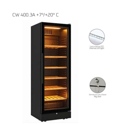 Il sistema di refrigerazione statica con gas R290 mantiene temperature stabili tra -23°C e -18°C, controllate tramite termostato elettronico e monitorate con termometro digitale. Lo sbrinamento manuale garantisce una manutenzione semplice, mentre la serratura con chiave protegge i contenuti.