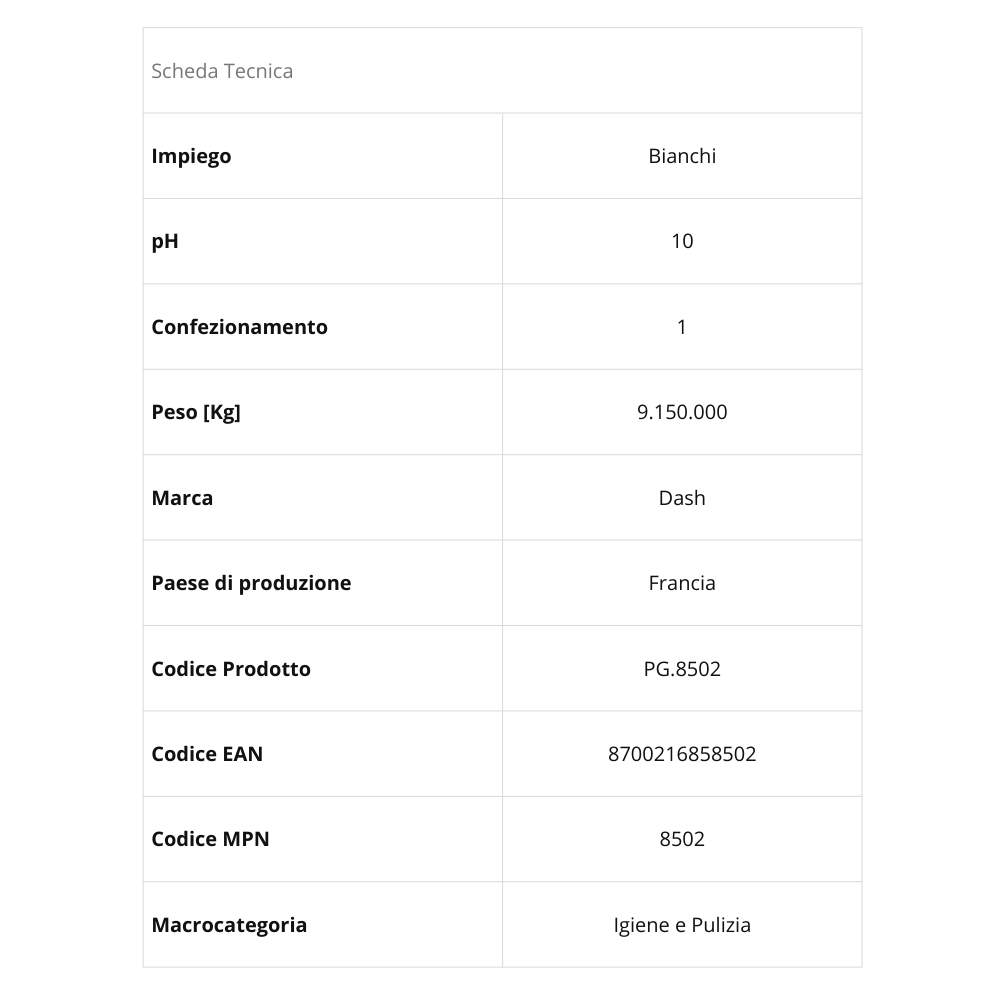 Dash PGP Polvere Pro Plus – Detersivo Professionale in Polvere 130 Misurini 9,1 kg