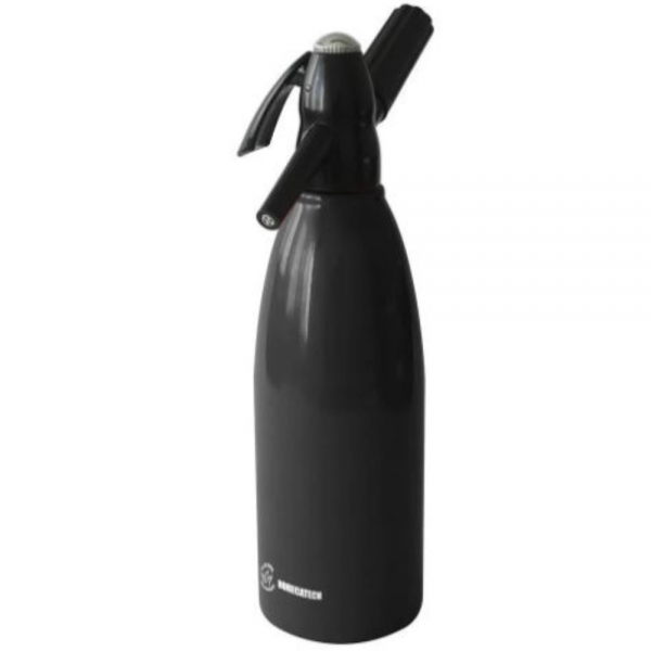Sifone per seltz in acciaio satinato AISI 304, testa in PC e PBT, da 1 litro.